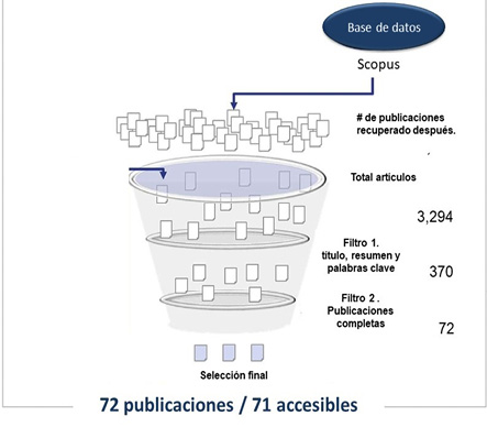 Luego de esto se realiza un análisis individual, revisando uno a uno los 370 documentos con el objetivo de identificar los estudios precisos que abordan el tema objeto de estudio, la contabilidad crítica. El procedimiento anterior, arrojó un resultado de 72 estudios científicos que corresponden a la muestra B (Tabla 2).