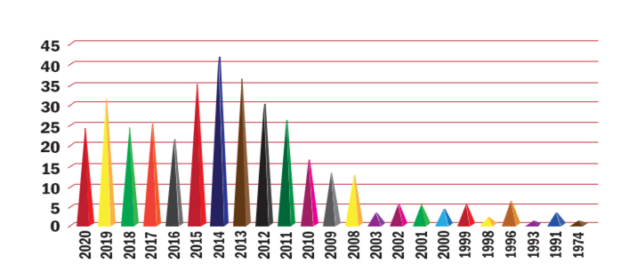 Entre el periodo de tiempo comprendido entre 1974 y 2020 |