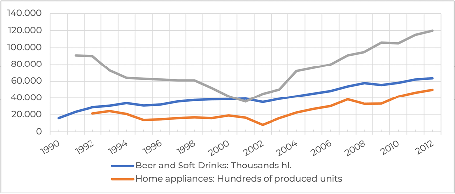 The development of DISN was stimulated by neo-populist economic policies, as these sectors were oriented towards the domestic market, and therefore they were sensitive to the positive evolution of the economic cycle, as well as to that of income and its distribution. (Ablin, 2012; Ablin & Naso, 2012; Bekerman & Sirlin, 2000; CEPb, 2008).