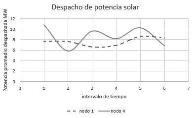 En este documento se especificarán los resultados obtenidos al desarrollar una función de optimización de costos para el despacho de energía en múltiples (6) periodos de tiempo considerando la variabilidad y la incertidumbre de diversas fuentes de generación de energías renovables como lo son el sol, el viento, además de los ciclos de carga de Vehículos Eléctricos (VE) en una red de generación distribuida. El algoritmo de optimización heurístico utilizado fue tipo DEEPSO (combinación de enjambre de partículas y evolución diferencial) en el cual se tuvo en cuenta costos de penalización por la sub o sobre estimación del potencial energético, penalizaciones por limitaciones físicas del sistema, además de la optimización del flujo de potencia mediante la inyección de reactivos con capacitores tipo shunt o mediante la utilización de taps de transformadores. El resultado final de la investigación fue el desarrollo de un algoritmo tipo DEEPSO para la optimización del despacho económico de energía en sistemas de potencia con alta penetración de fuentes renovables.