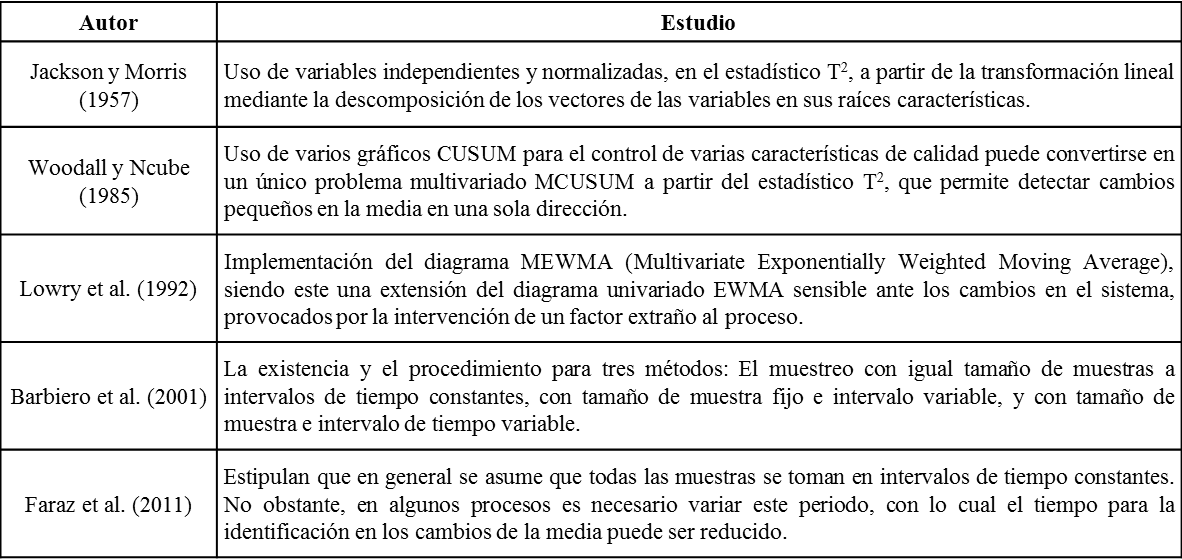 A. Konrath. (2002) Decomposicao da estadística do gráfico de controle multivariado T2 de Hotelling por meio de um algoritmo computacional. Tesis para optar el título de Magíster en Ingeniería de Producción, Universidade Federale de Santa Catalina, 2002.