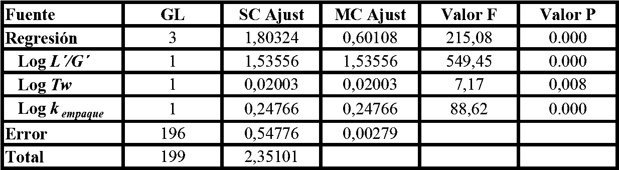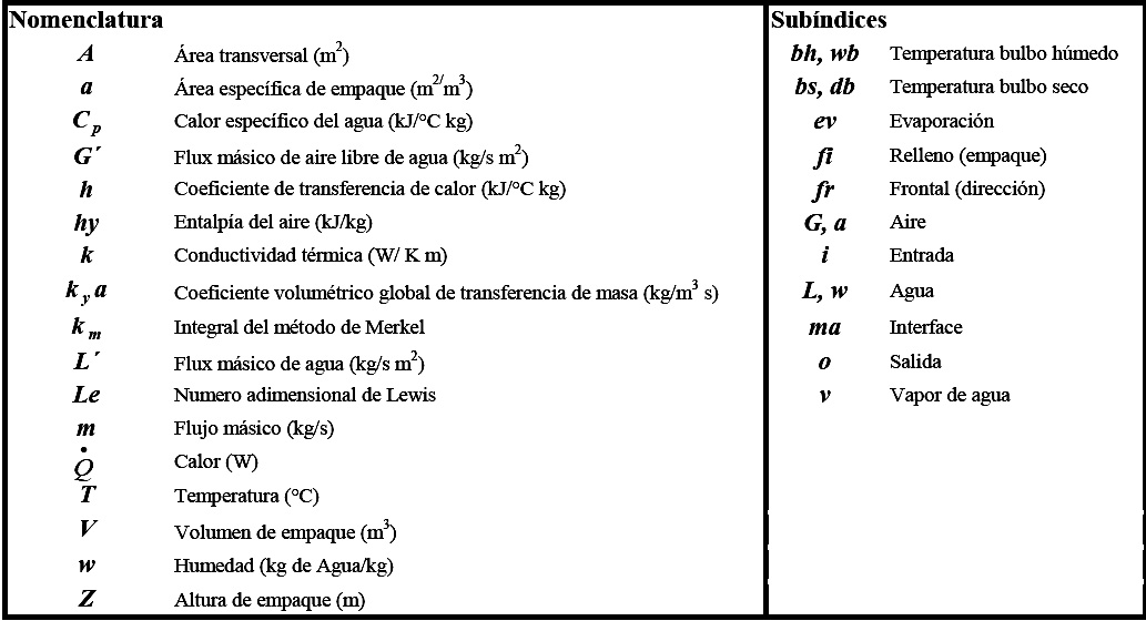 Torre de enfriamiento, desempeño, eficiencia, correlación no lineal, Coeficiente volumétrico de transferencia de masa, empaque de torre