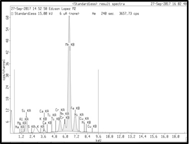 - Figura 4. Espectrómetro obtenido por fluorescencia de rayos X para una muestra de escoria