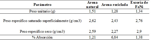 - Tabla 4. Variación propiedades físicas de diferentes agregados y la escoria de ferroníquel