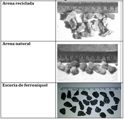 - Tabla 5. Tipo de fractura de arena reciclada, arena natural y escoria de ferroníquel.