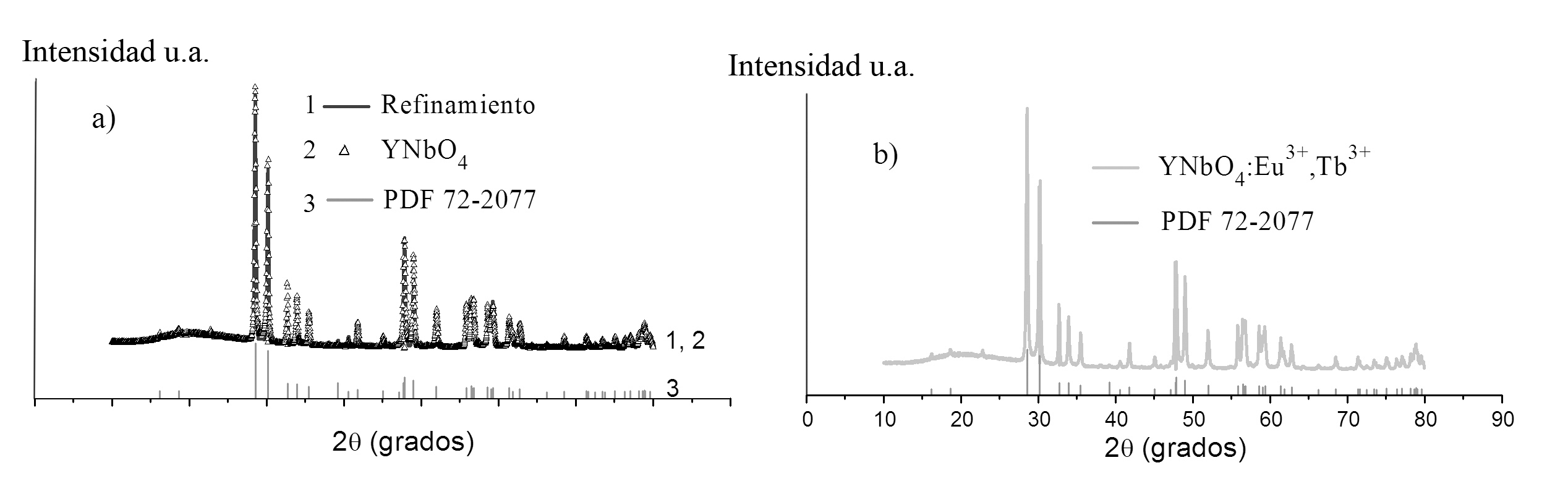 Caracterización morfológica de YTaO4 y YNbO4 dopadas con Eu3+ y Tb3+/Morphological characterization of YTaO4 and YNbO4 doped with Eu3+ and Tb3+